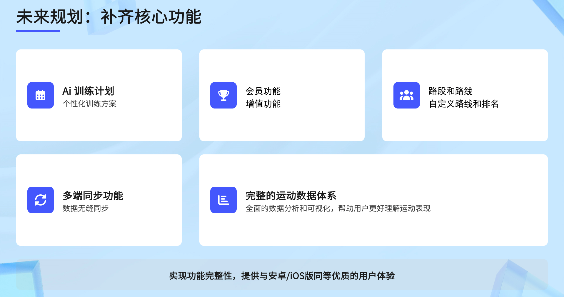 - 构建核心跑步体验:优先保障跑步记录、实时监测等基础数据的稳定性,打造流畅的跑步记录与分析体验。